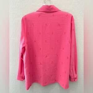 Tags hot pink blouse, embroidered shirt, petite size shirt, classic button down, modest blouse, office wear, business casual, cottagecore