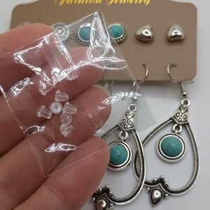 DREAM CATCHER feather turquoise silver boho earring bundle
