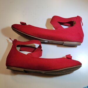 DREAM PAIR BOWNOT BALLET CRISS-CROSS STRAP CLOSED TOE BALLET FLAT FEATURES ANKLE STRAP FLAT SIZE 7 1/2 COLOR RED BACK ZIP CLOSURE MADE WITH SOLE-STRETCHY AND ALL MAN MADE MATERIALS THIS ITEMS IS PRE-OWNED EXCELLENT CONDITION WITH ONLY LIGHT SIGNS OF WEAR IF ANY CHECK THE PICTURES (NO TRADES REASONABLE OFFERS PLEASE BUNDLE FOR BETTER DEALS)
