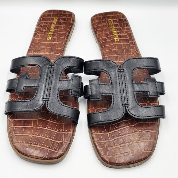 DREAM PAIRS Black Slip-on Slides Open Toe Dressy Flat Sandals Women's Size 11