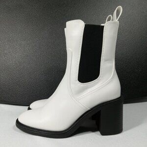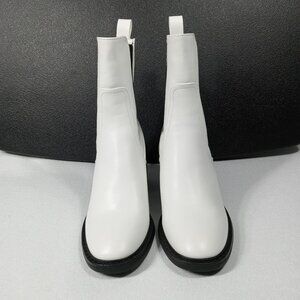 DREAM PAIRS Chelsea Mid-calf White and Black Chunky Heel Boot Women's Size 7.5