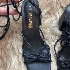 DREAM PAIRS Lace Up Wrap Strappy Block High Heel Square Open Toe Chunky Sandal
