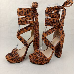 DREAM PAIRS Leopard Platform Strappy Gladiator Block Heel Size 6.5