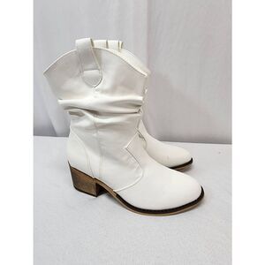 DREAM PAIRS Size 7.5 Women's Boots Mid Calf Western Cowboy Chunky Heel Boots White
