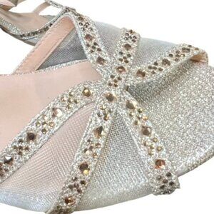 Comfort heels, small rhinestones throughout. Mesh on the toe area. Super cute!