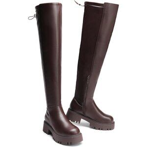 DREAM PAIRS Women's Brown Over The Knee Round Toe Thigh High Block Heels Boots