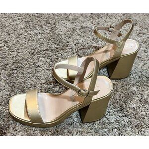DREAM PAIRS Women’s Chunky Block High Heels Ankle Strap ~ Gold ~ Size 8.5