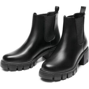 The 2.36-inch low chunky block heel heeled boots provides stability and style while walking, combining anti-slip TPR outsole and lug sole helps you conquer slippery or uneven surfaces with ease.