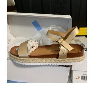 DREAM PAIRS Women’s Open Toe Ankle Strap Espadrille Platform Buckle Sandal GOLD
