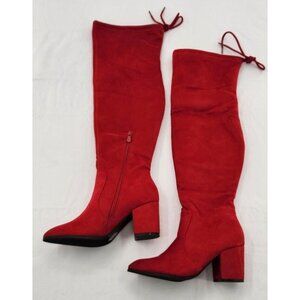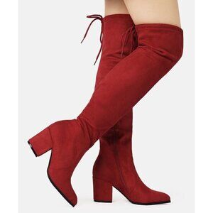 DREAM PAIRS Womens Over the knee Stretch Block Heel Long Boots Sexy Red Size 8