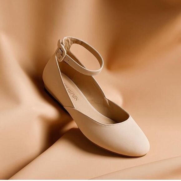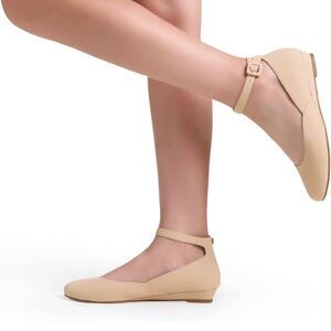 DREAM PAIRS Women's Revona Low Wedge Ankle Strap Flats Shoes size 7. These shoes are never worn like new, however I noticed a few brown tiny dots on the left shoe. Please refer to pics. Thanks.
