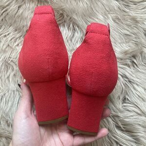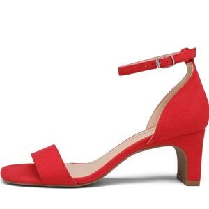 DREAM PAIRS Red Square Open Toe Low Block Chunky Heel Ankle Strap Pump Shoe