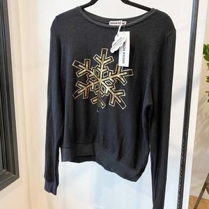 DREAM SCENE x WILDFOX Women's Back/Gold Foil Snowflake Fleece Pullover sz M NWT