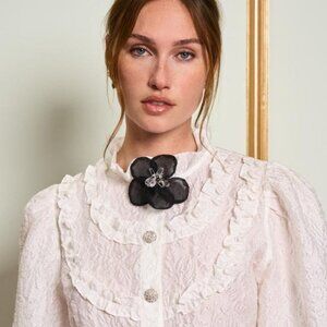 Unleash your feminine charm with our cropped blouse, delicately crafted from a floral organza jacquard fabric.