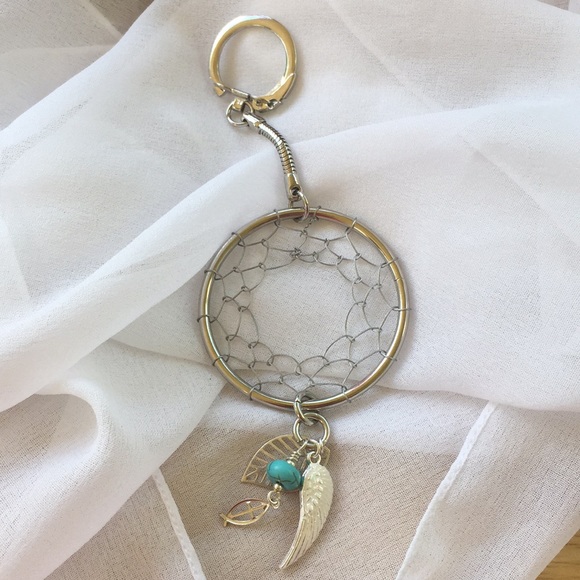 JUST FINISHED!!!!! Beautiful dreamcatcher keychain, web is wire for durability, has 3 charms an angel wing, leaf & turquoise stone/cross. 6β long, 2β webbed circle. Any questions just ask & THANKS FOR STOPPING BY πππ