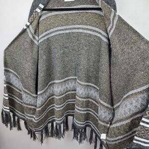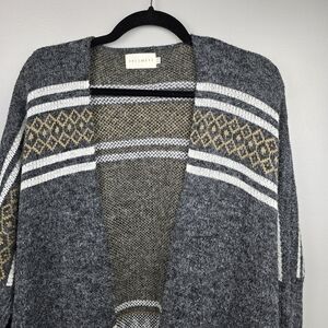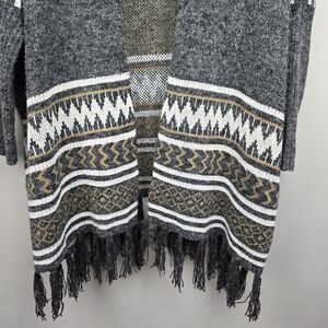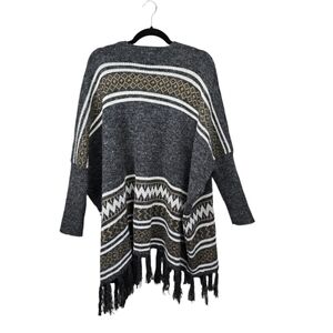 DREAMERS Boho Fringe Western Oversized Sweater Cardigan Gray Womens Size S/M