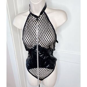 DREAMGIRL Faux Leather Fishnet Teddy & Leash Plus Size Queen New