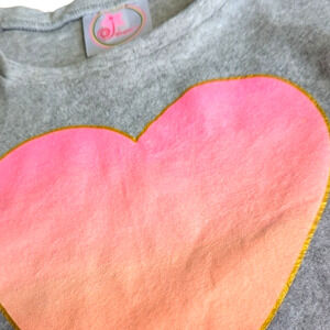DREAMSTAR SPORT new soft, fuzzy gray sweatshirt with ombre pink sparkly heart.