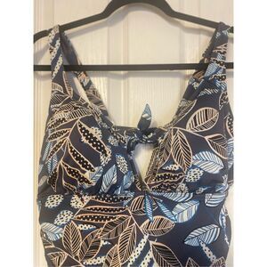 One piece plus size swimsuit by DreamSuit. Size 18W. Shaping & Slimming technology. Tie detail at the bust and ruching in the sides.