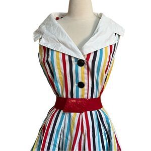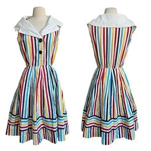 DREAMY Vintage 1950s Handmade One of a Kind Rainbow Shawl Collar Cotton Dress