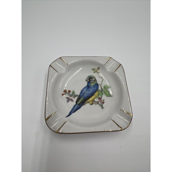 DRESDEN BIRD ASHTRAY Hand Painted 14K Gold Small Chip MINI Porcelain Germany