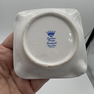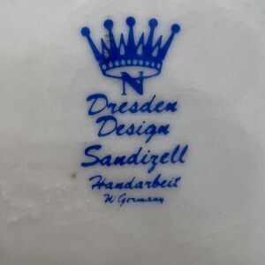 This exquisite Dresden bird ashtray is a rare find for collectors of tobacciana and porcelain items. The hand-painted design and 14K gold accents make it a unique piece, showcasing the intricate craftsmanship of German artisans. Its small size makes it a great addition to any collection or as a decorative item for your home. The ashtray has one small chip on the back but otherwise is in excellent shape and has been well-preserved over the years. It is a must-have for any serious collector and a beautiful addition to any decor.