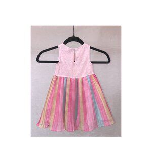 RARE EDITIONS brand. Sleeveless Dress with pink, crochet lace bodice, rainbow colored accordion pleats, double skirt liner with crinoline. Pre-worn, like new. BUNDLE (2) or more Items from Sage's Closet & DEFINITELY SAVE 30%! A Shipping Discount may also apply! BUNDLE, BARTER, & DISCOVER YOUR SAVINGS!!! AAAALLLL OFFERS CONSIDERED!!
