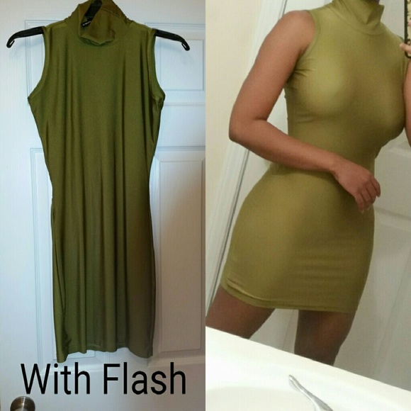 82% nylon, 18% spandex olive sexy dress. Great for dates or a night out on the town! Only worn twice. Small but can fit medium because of stretch.