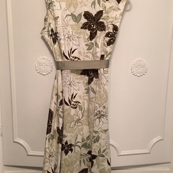 GOOD CONDITION COMFORTABLE COTTON/SPANDEX NO SLEEVES DRESS MUTED SAGE AND BROWN COLORS
