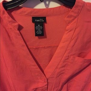 Coral color, button down. Very cute and stylish. No stains or flaws. Did come with a belt but it is not in my possession but a plain brown belt would like great with it. All buttons work. I usually wear a small in juniors and this dress fits me perfectly