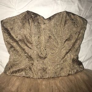 THIS DRESS IS PERFECT FOR A SPECIAL OCCASION! IT A CHAMPAGNE NUDE COLOR. IT IS A SIZE SMALL