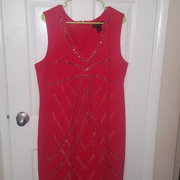 Vibrant Red Statement dress...silver & gold grommets & detailing...NEVER WORN...tags removed when I planned to wear it to a event & changed my mind for a different outfit size 22/24