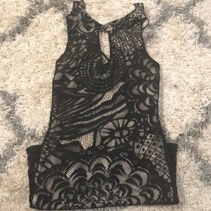Lace black dress with strips on the back