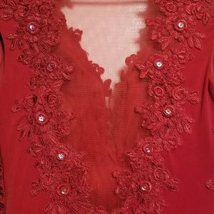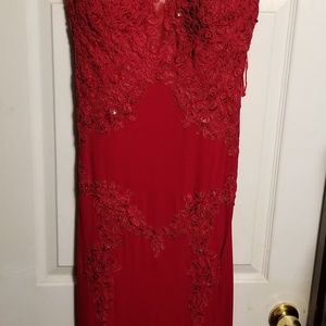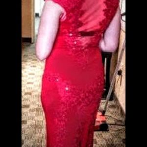 A red stunning Christmas dress. Very beautiful and elegant. I got this dress made two years ago for a Christmas event Unfortunately I never wore to date. I am 5'3 weight 123lbs and I fit a size 4-6 perfectly.