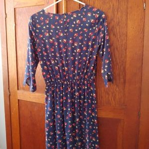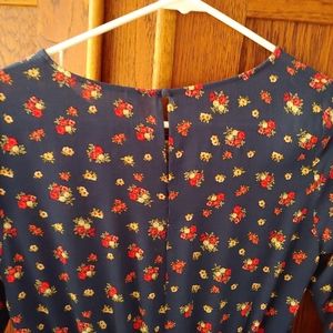 Round neck, 1 button slit back neck, 3/4 slit sleeves, elastic gathered waist