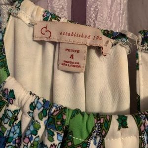 Size 4 Petite dress from Dressbarn. White with blue/green designs. Tag still attached.