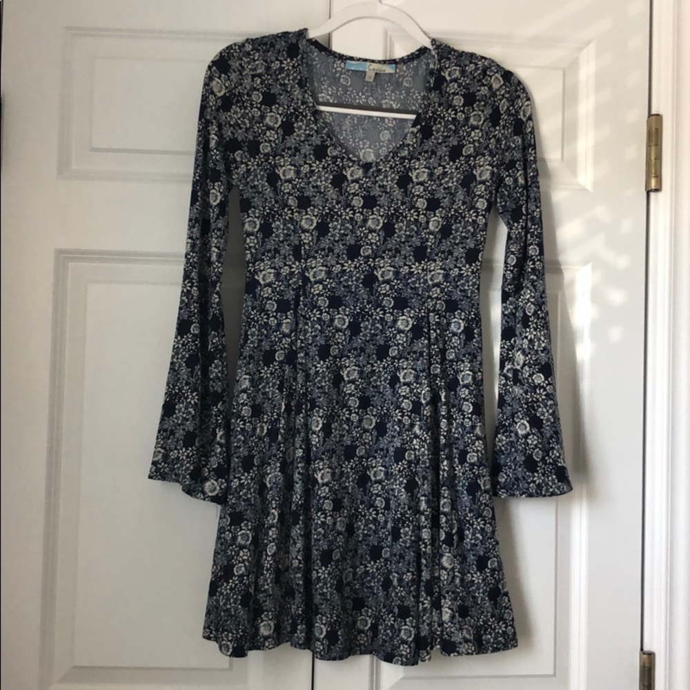 Comfortable/soft floral dress - flare long sleeves - stretchy material - great condition never worn