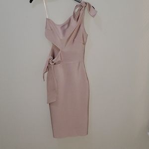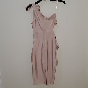 Light soft pink one shoulder dress small split in back also ties at shoulder and on side