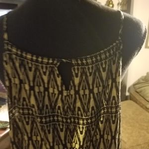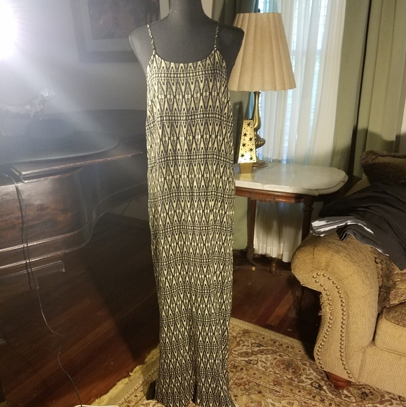 @naeanne40 Hi. The length is 52 from the top front to bottom. The bust circling around from bottom of arm is 44. Although the dress appears black and white it is black and tan. Thanks for inquiring!