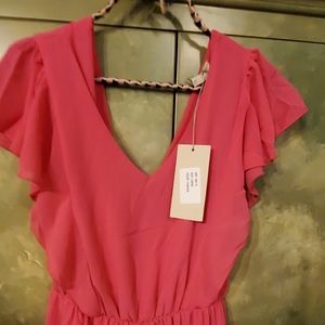 SARA CORSI RUFFLE HEM & SLEEVE MIDI COCKTAIL DRESS. BNWT NEVER WORN SIZE L FUSCHIA COLOR MADE IN ITALY