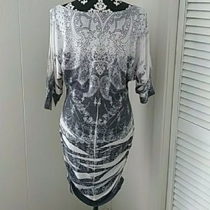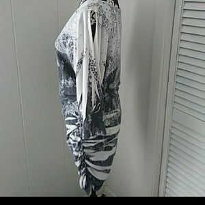 Gorgeous Open Sleeve Black And White Fun Print Dress Unique Size Medium