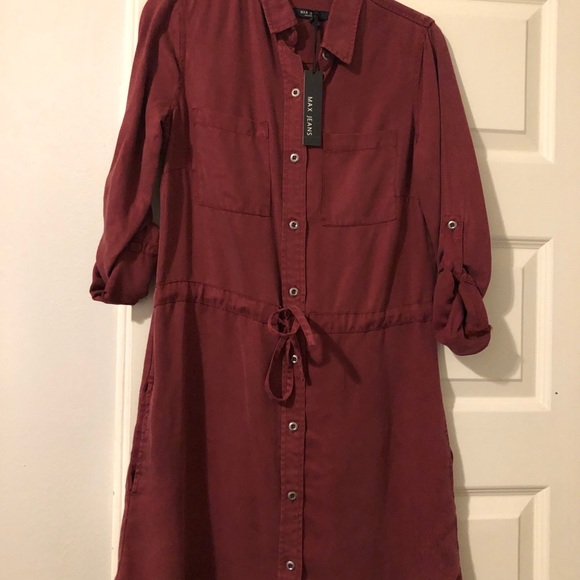 Super comfortable, soft casual dress by Max Jeans. Can wear as 3/4 sleeve length or roll down for long sleeves. Burgundy in color.