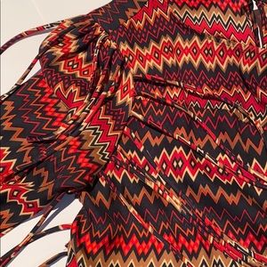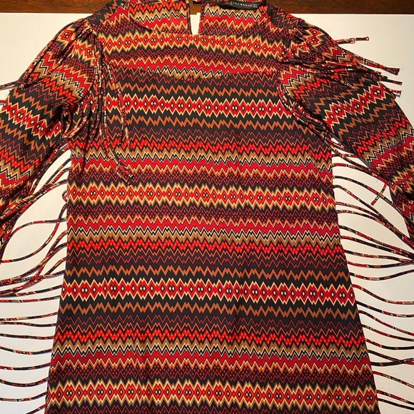 L/S Multi-Colored Chevron Pattern Dress w Fringes on the side. Total Lenght: 35” Sleeve Length: 21”