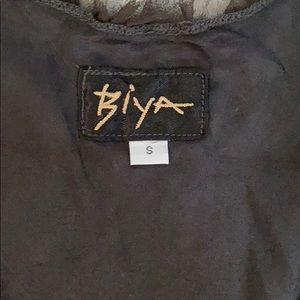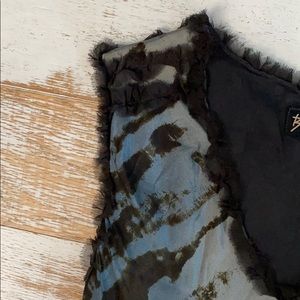Dress: Dress is adorable was worn 1 time in a photo shoot. The back is solid black and the front has trim around the neck and arms and at the very bottom on one side of the dress. Almost looks like a zebra print with a beautiful blue brown tan and black design. So Fun!