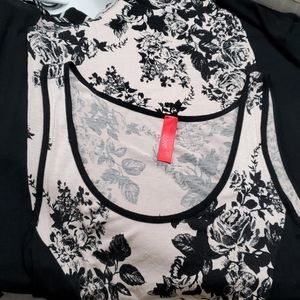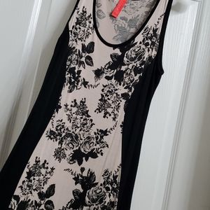 beige soft fabric strech dress with black long cut to the body size M