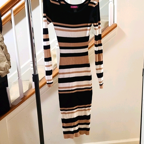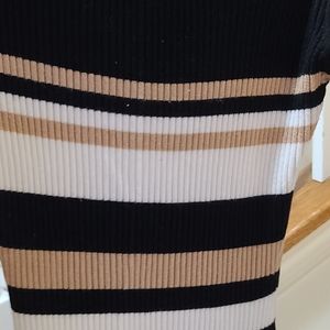 Worn twice only. Fitted dress and fabric stretchable Stripe of brown cream white and black