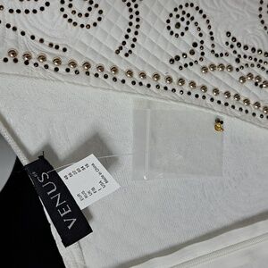 OFF WHITE DRESS WITH BEADING ON THE FRONT AND SLEEVES. NEW NEVER WORN.(THIS DRESS IS BY VENUS AND THEY DO NOT PUT TAGS ON MOST OF THEIR CLOTHING)