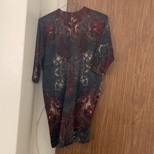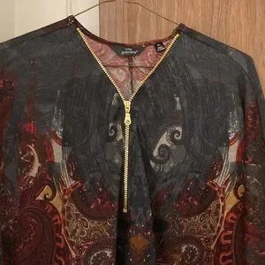 Knee length wool blend dress with 3/4 sleeves and a gold front zipper. Never worn, no tags, too small for me.