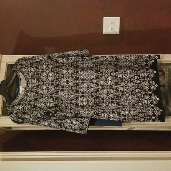 Printed patterned black and white dress