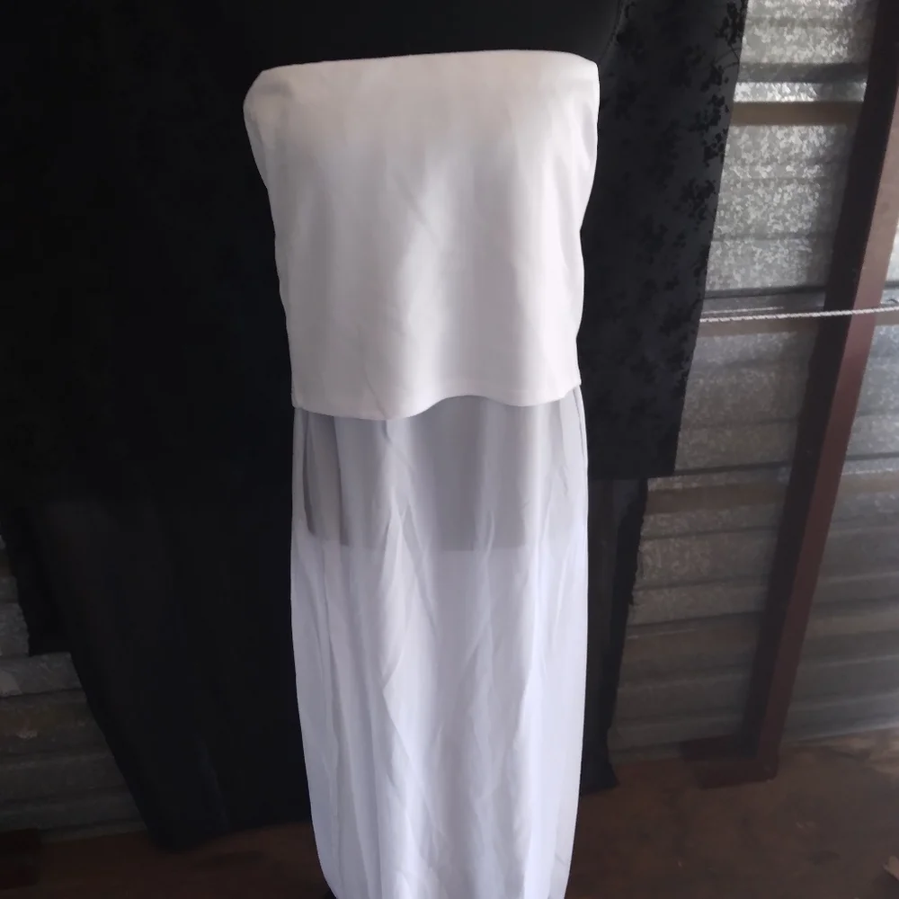Bella D White Sheer over White TubeTop Dress. M/L